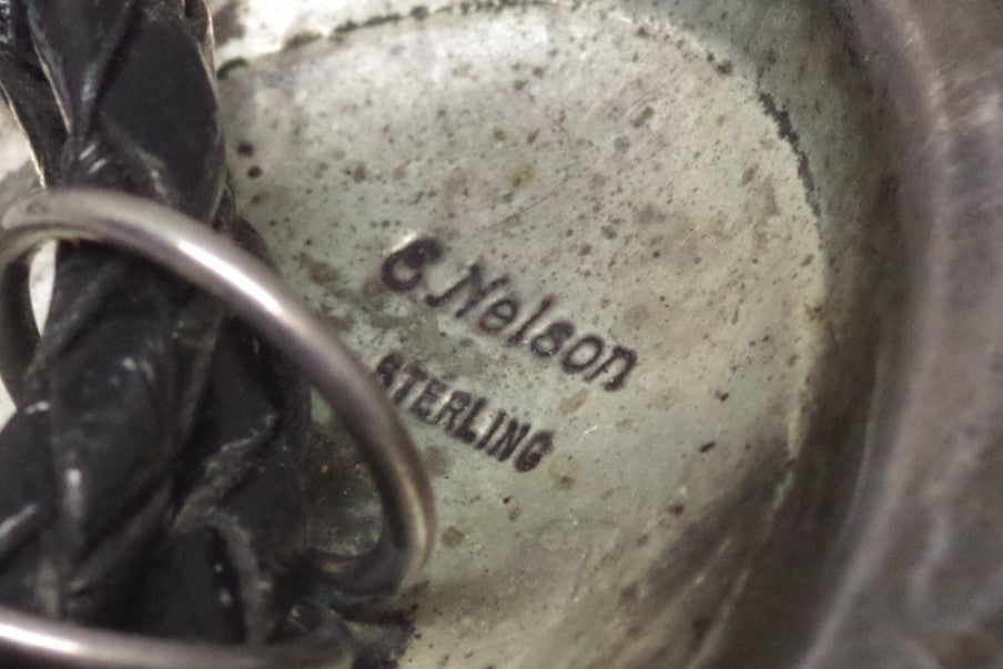 This sterling silver bolo will glint every time you walk into the saloon. Stamped by Navajo artist "E Nelson."