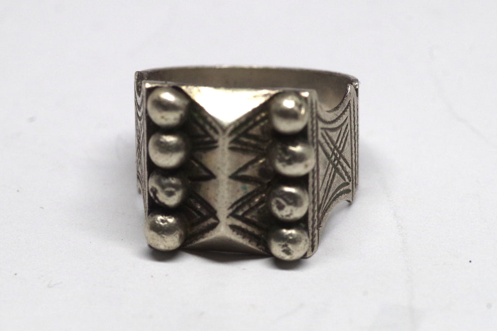 This gorgeous silver ring features a unique pattern of spheres and angles for a bold Moroccan aesthetic.