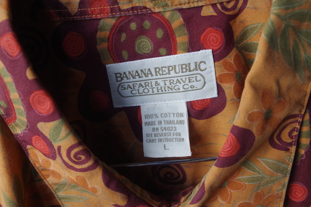 This snazzy aloha shirt from Banana Republic features a bold pattern of swirls and tropical flowers for the ultimate party look.
