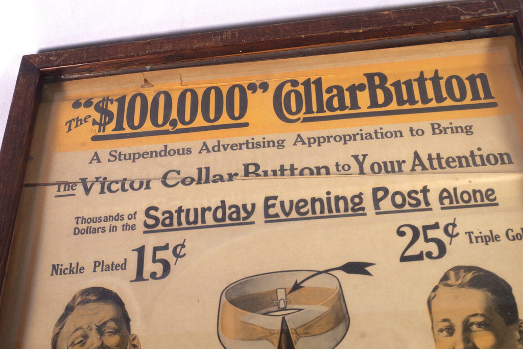 Back when detachable collars were all the rage, Victor Collar Buttons were the perfect way to hold them in place. Don't be a Mr. Pullhard, the Scowler! Comes in a lovely wooden frame.
