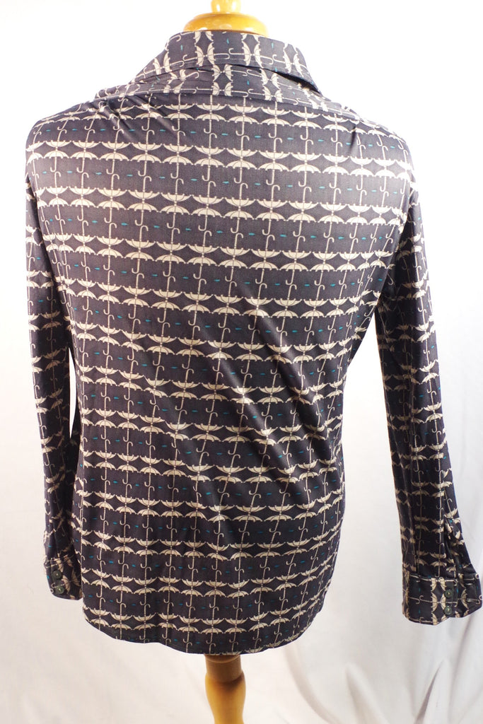 Save this gorgeous vintage, 100% nylon disco tee featuring a multitude of umbrellas for that next fashionably rainy day.