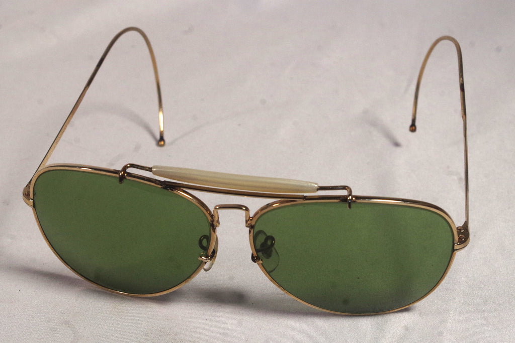 These Bushnell by Bausch & Lomb aviators with a white sweatbar are made in Korea and ready for that next jet-setting adventure. Comes with leather case.